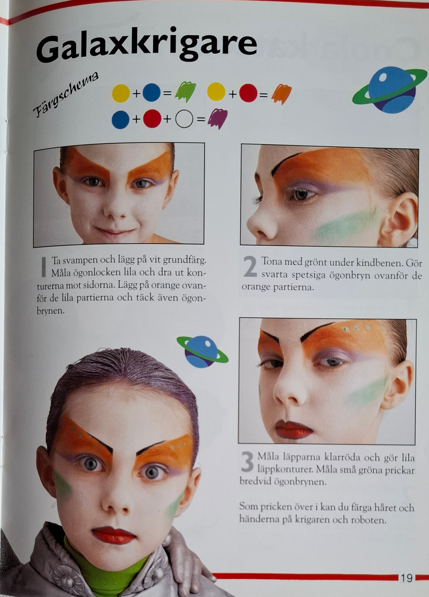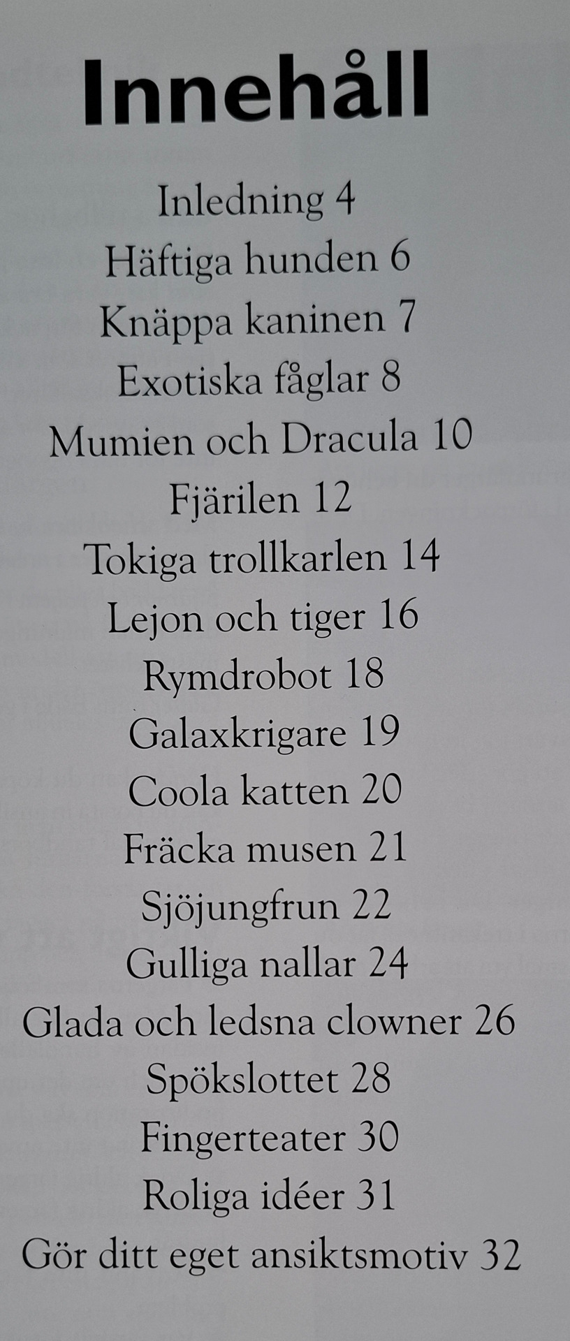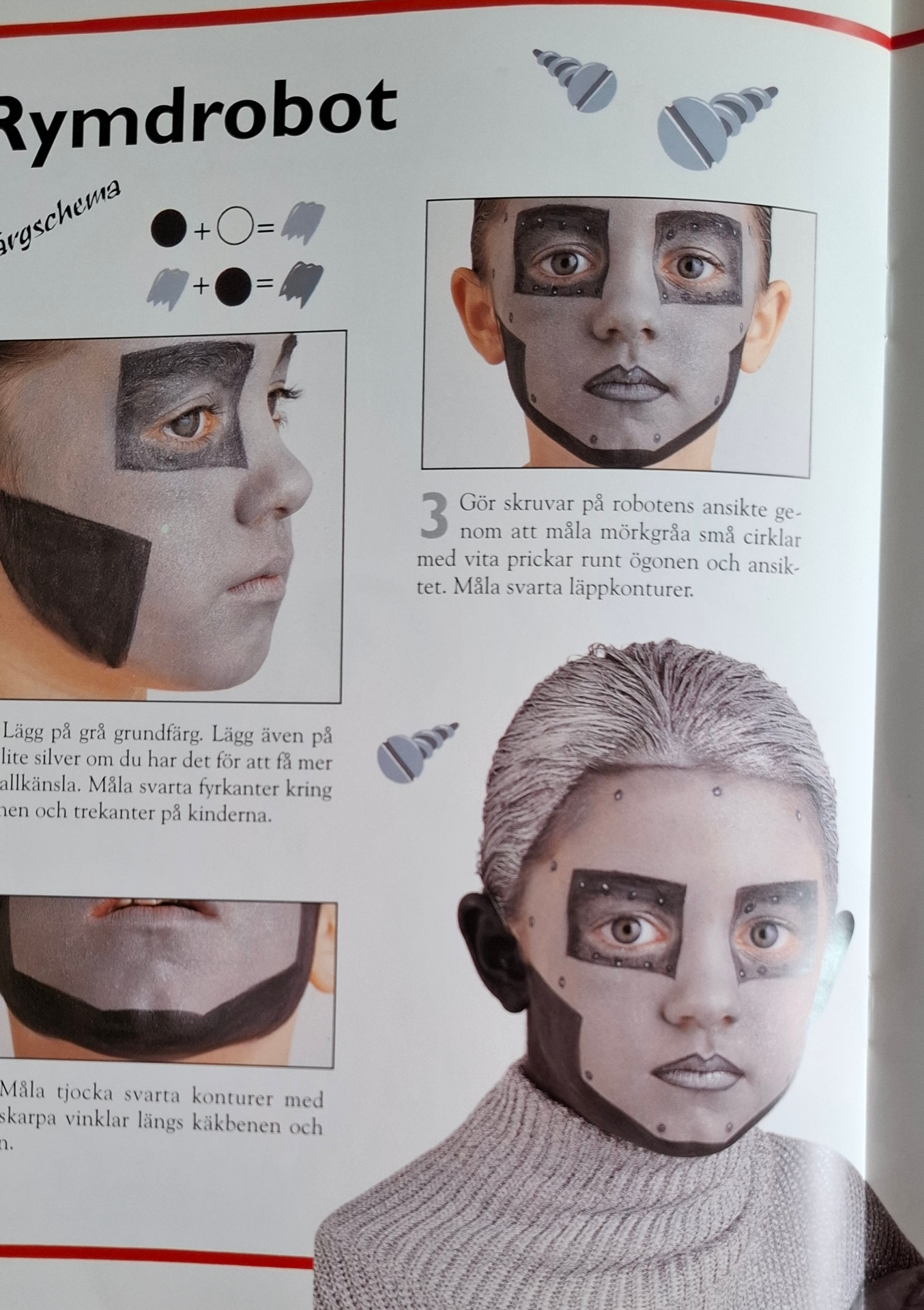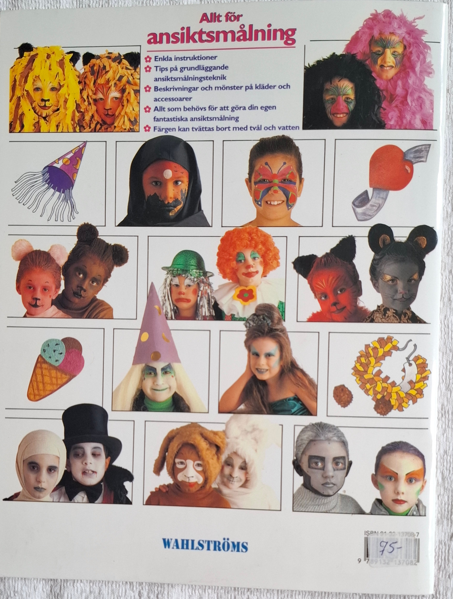 En bok på 32 sidor med tips och beskrivning på ansiktsmålning och mindre tillbehör.