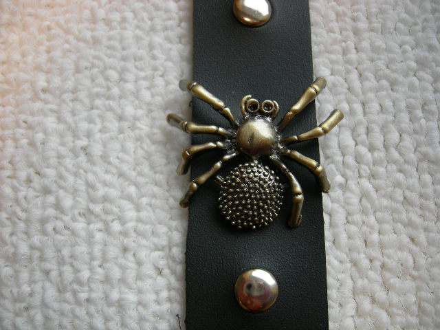 Armband i konstskinn med spindel i metall. Längd max 20 cm och minimum 7 cm.