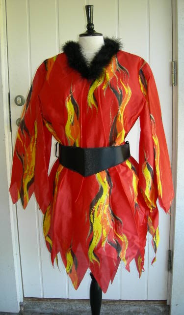 Kort eldklänning med dun i halsen och svart skärp. Storlek 44, övervidd ca 124 cm.