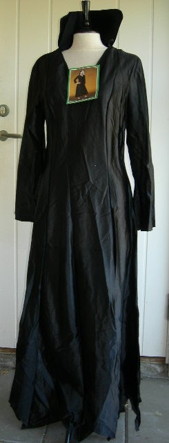 En enkel svart klänning med liten krage. Blixtlås i ryggen. Storlek 44, övervidd ca 105 cm.