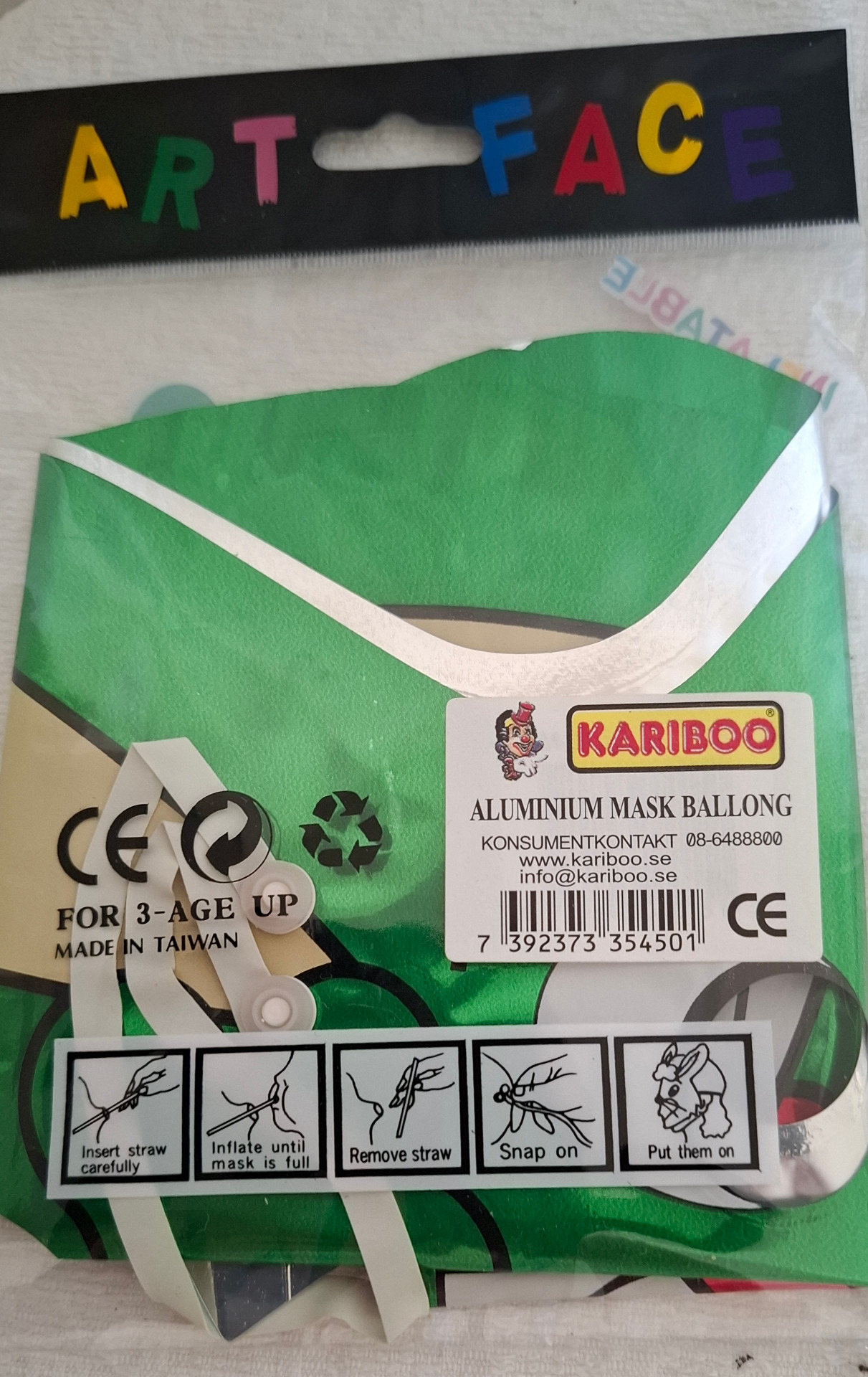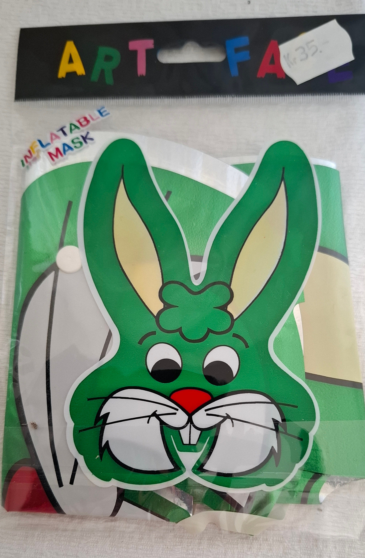 Grön kanin mask. Lite annorlunda, den är uppblåsbar. Helt ny oanvänd.