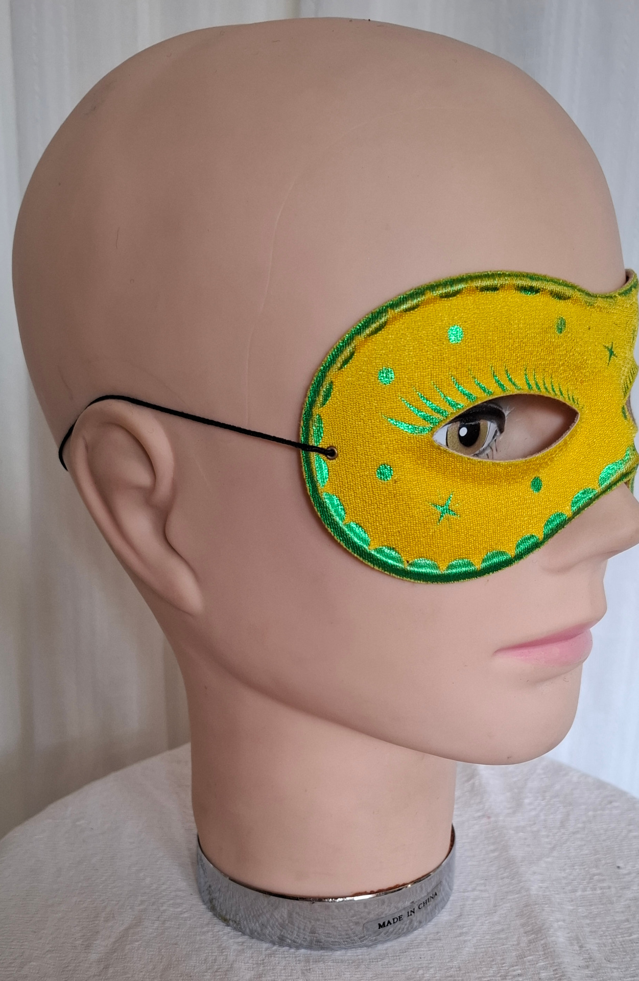 Gul ögonmask med grönt mönster. Passar vuxen bäst.