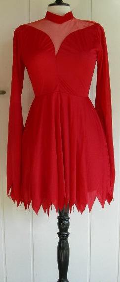Kort röd sexig djävulsklänning med diadem. Storlek ca M, övervidd ca 86 cm, midja ca 72 cm.