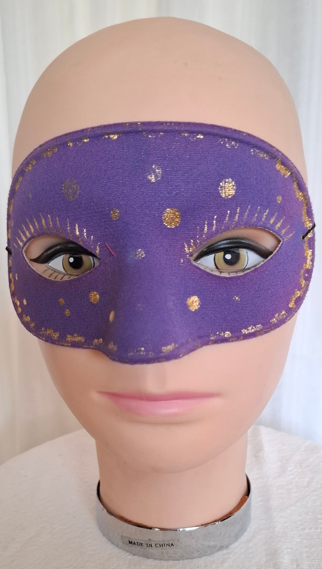 Ögonmask i lila med guldtryck. Passar bäst vuxen.