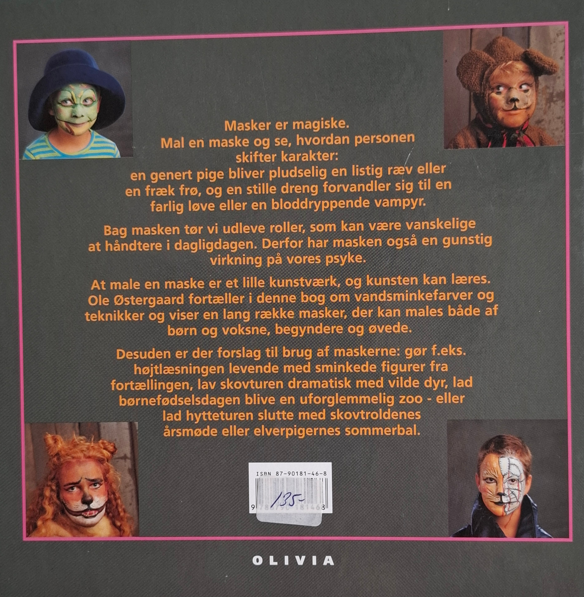 Bok på danska innehåller 60 sidor. Massor av olika djuransikten att måla. Information om material och tekniker och många djur att måla.