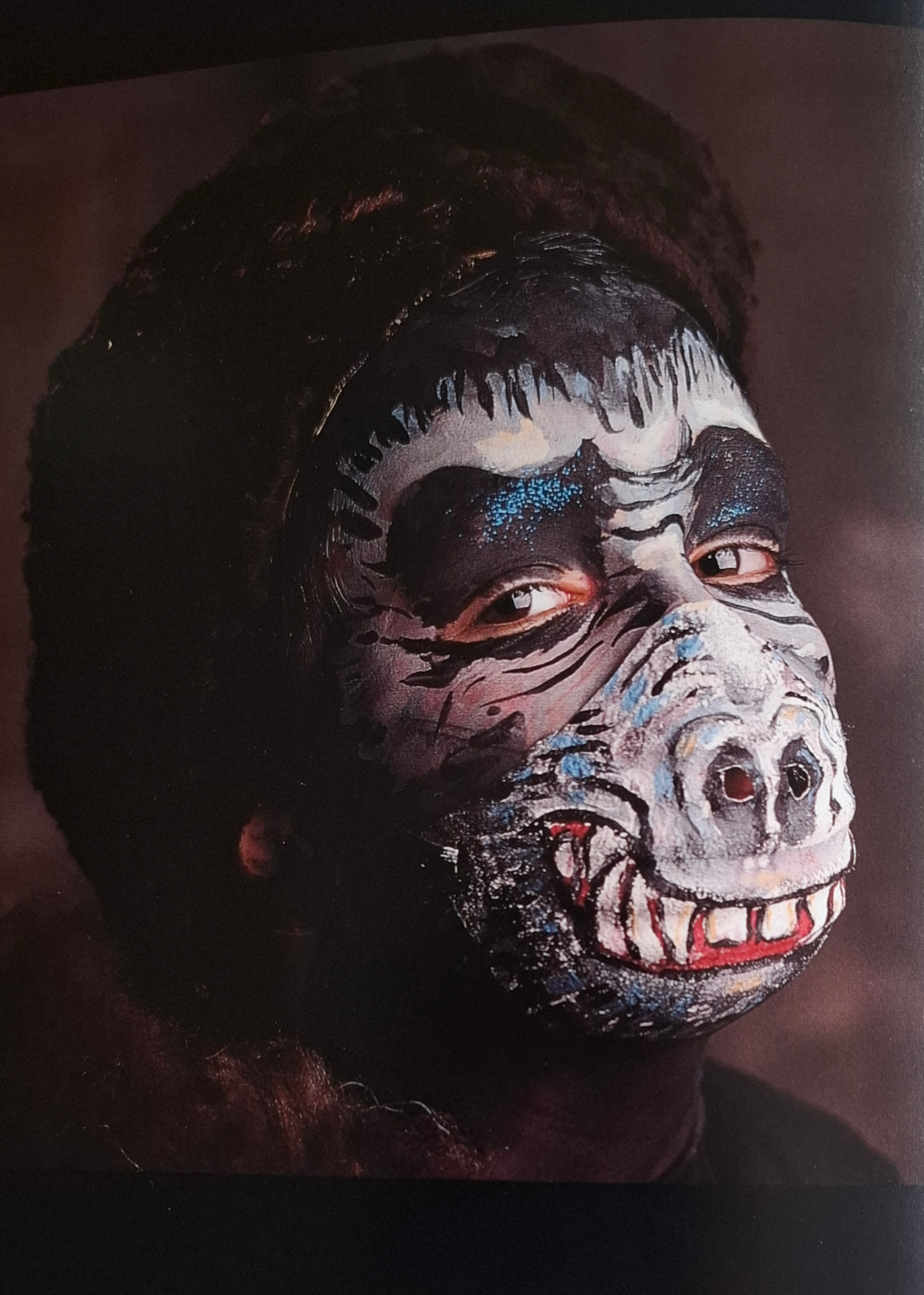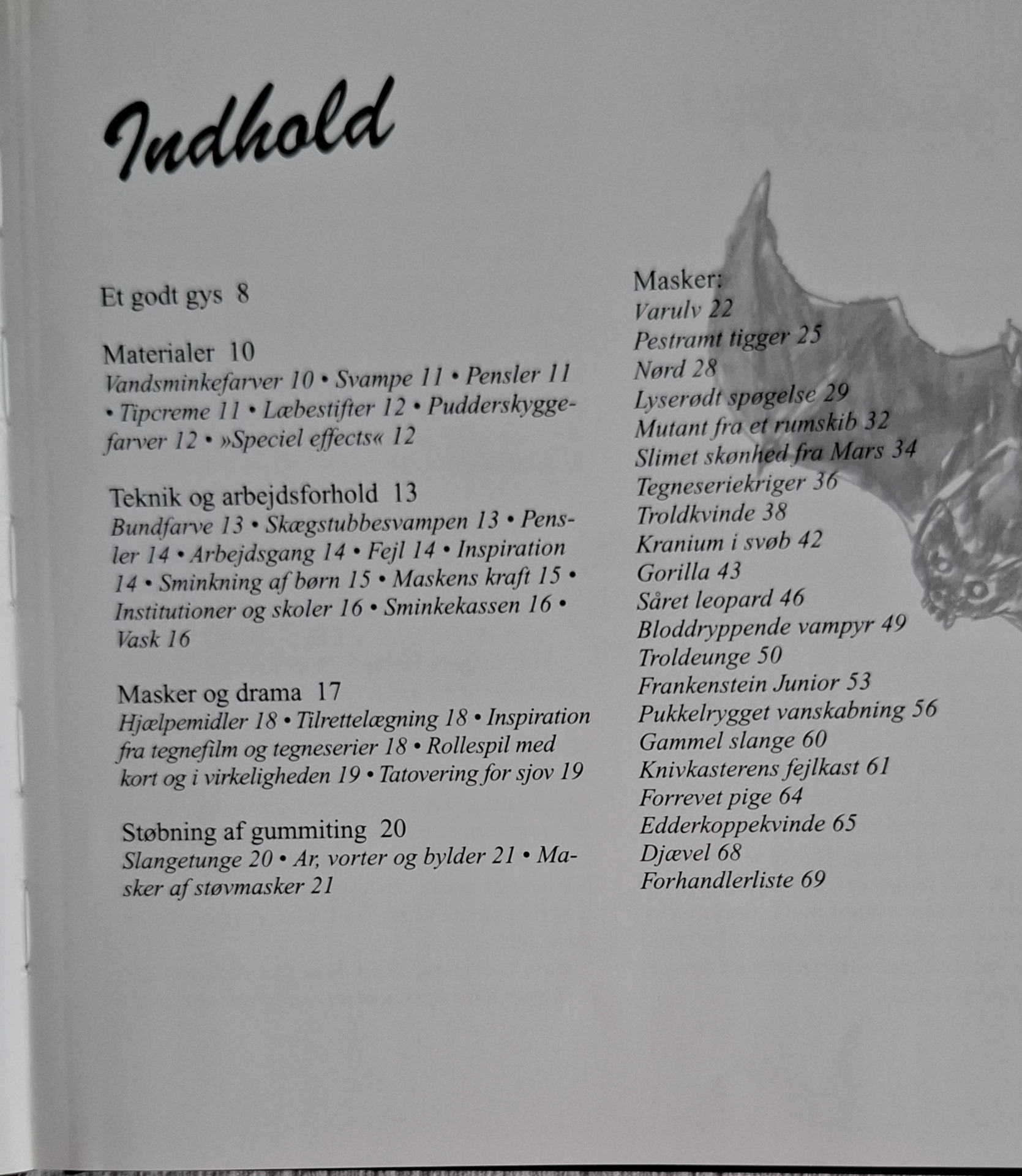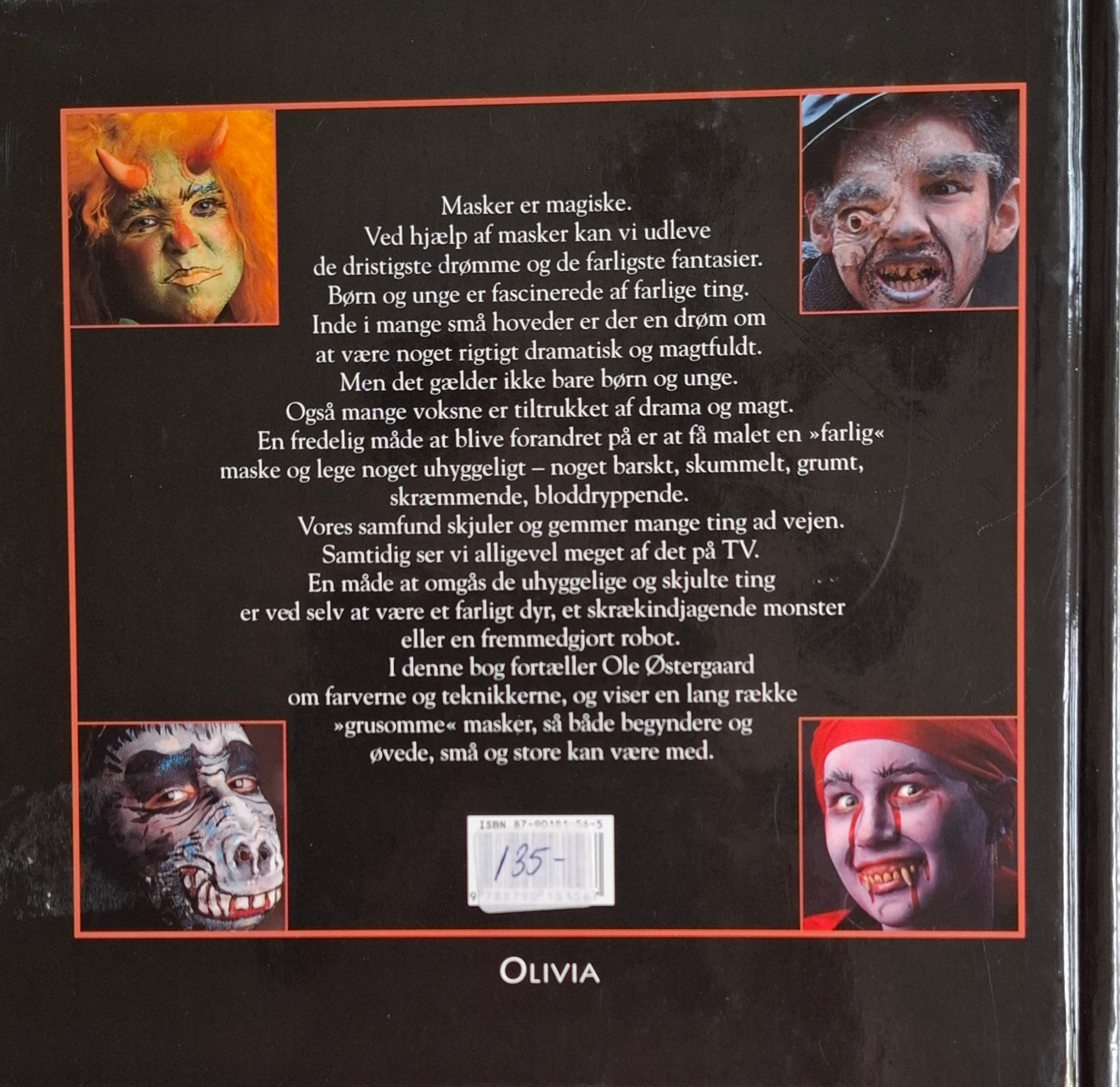 Bok på danska med 69 sidor. Beskrivning och modeller på skräck ansiktsmasker.