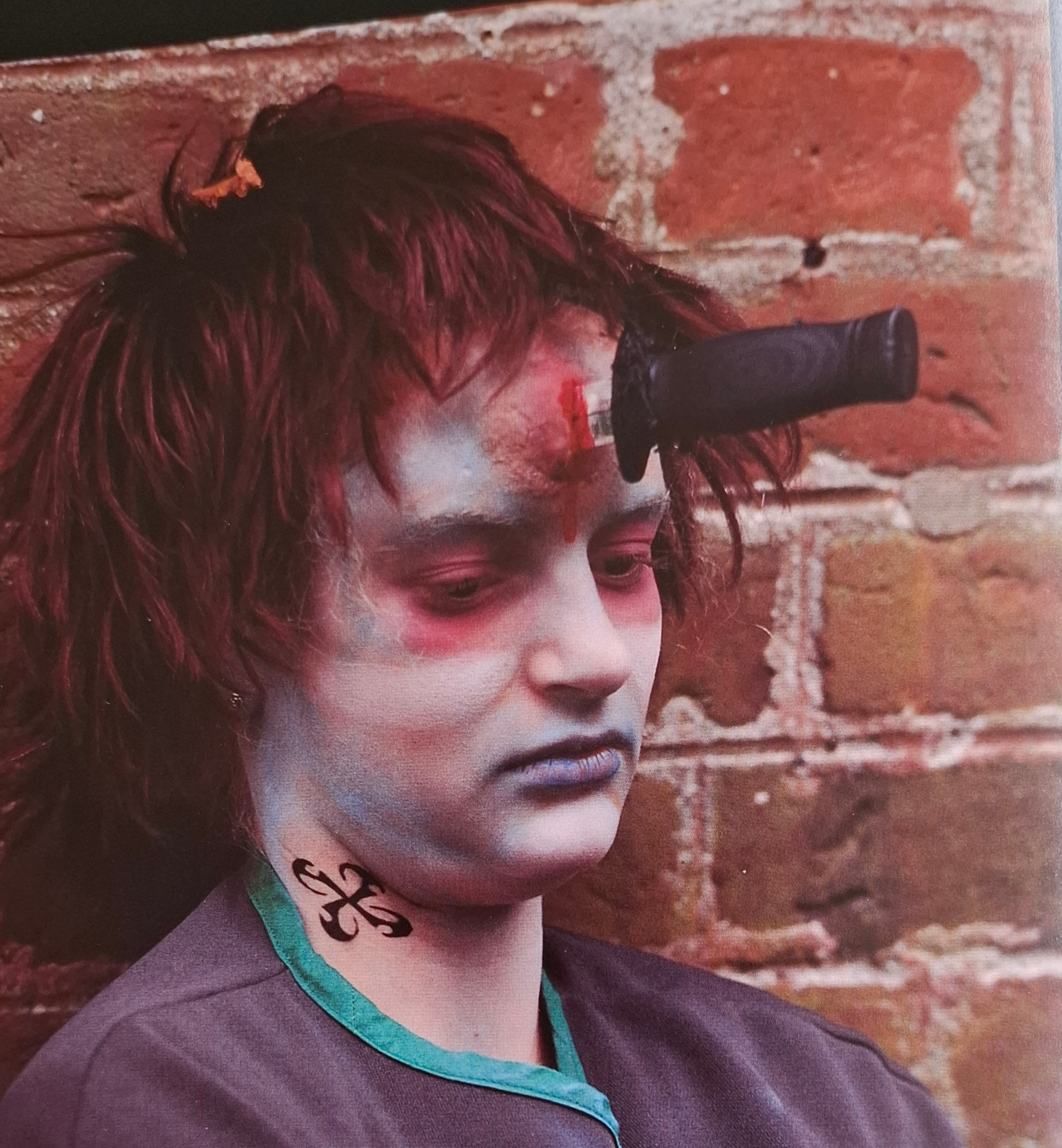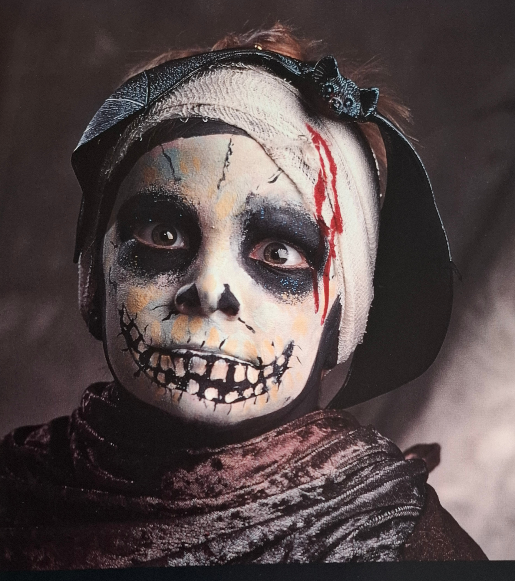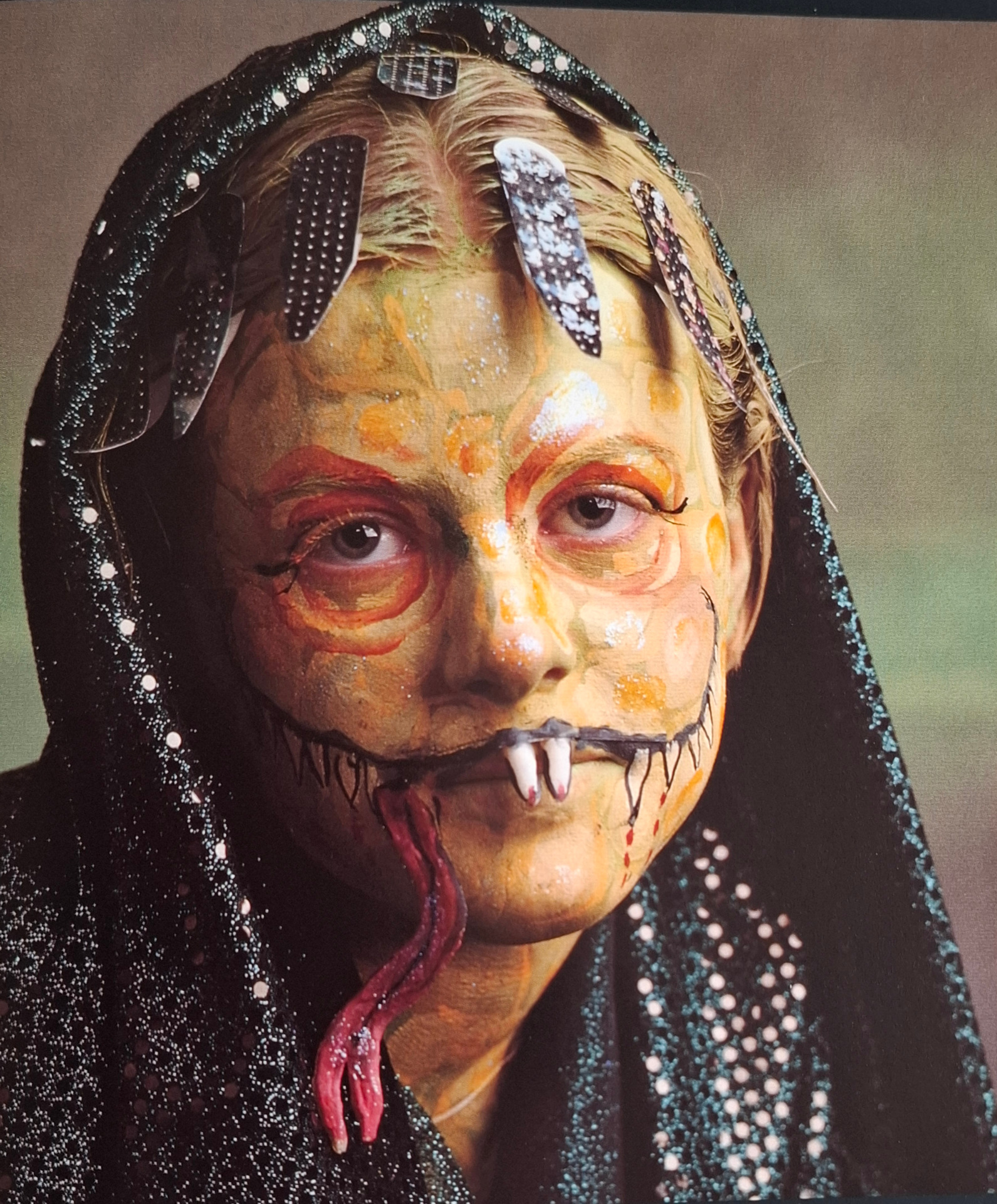 Bok på danska med 69 sidor. Beskrivning och modeller på skräck ansiktsmasker.