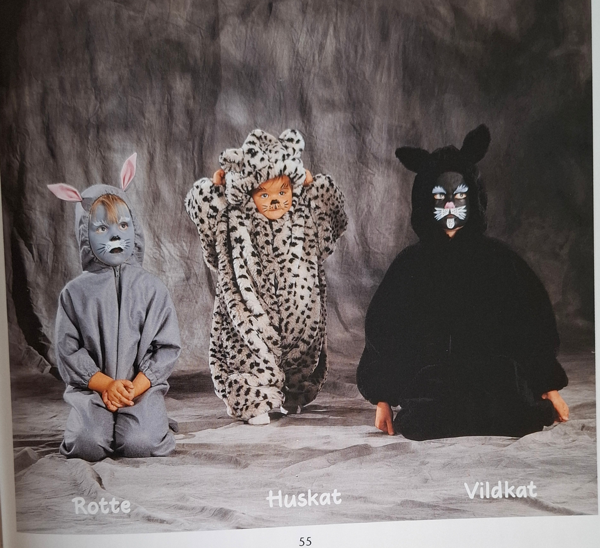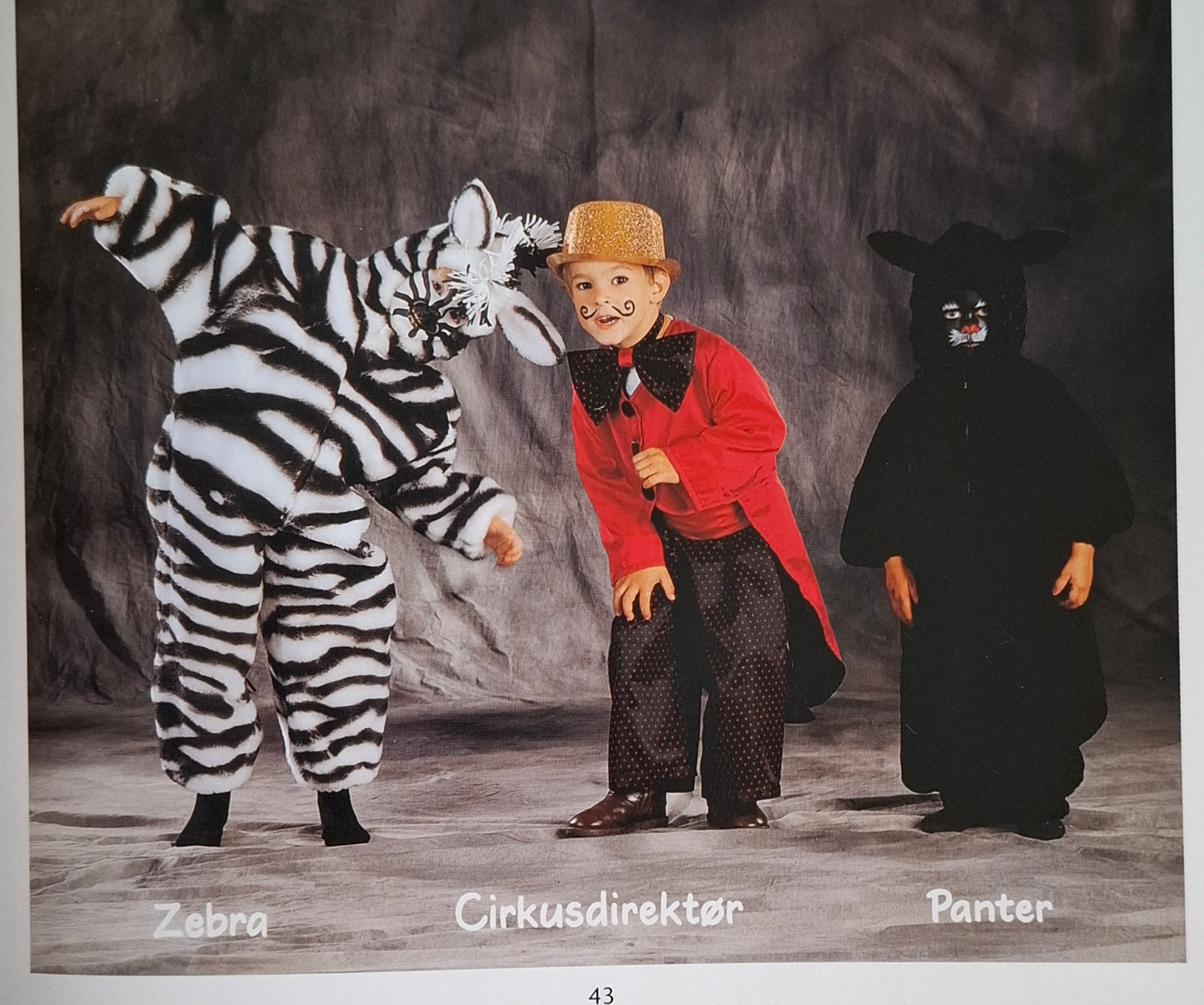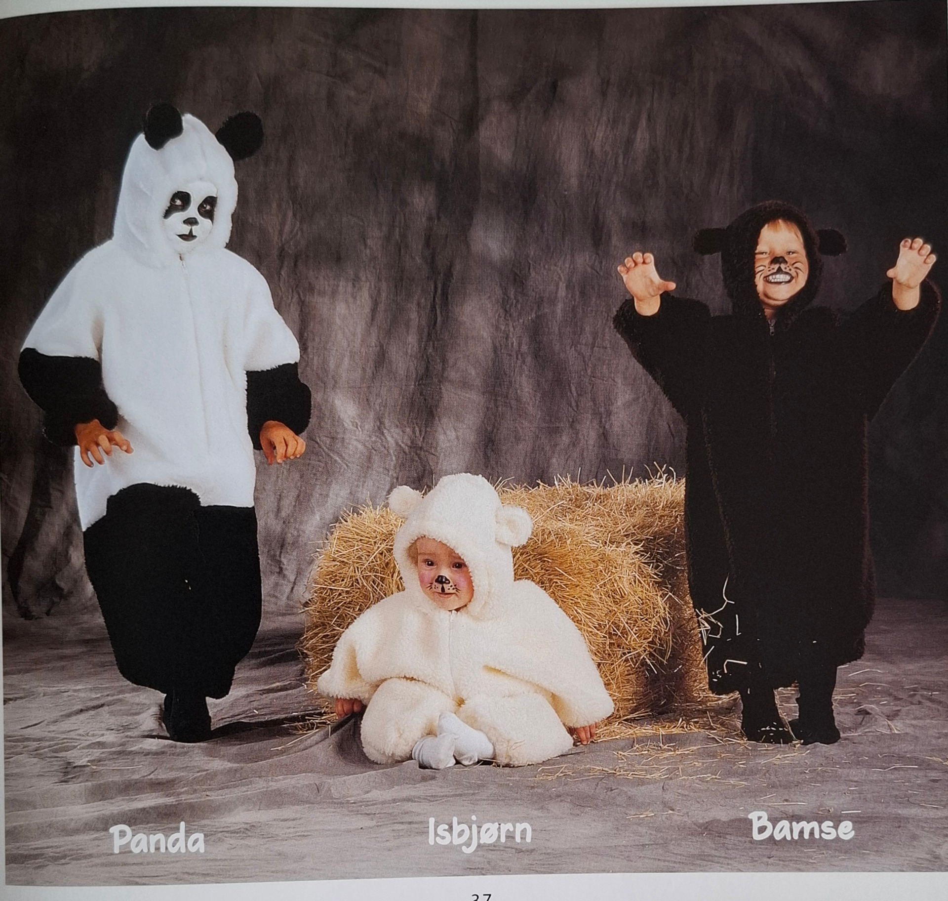 Bok på danska med 60 sidor. Måla ansikten och sy dräkter. Mönster finns i boken att förstora från rutmönster. Dräkterna finns i storlek 1-6 år. Många instruktioner på ansiktsmålning. Material rekommendationer för dräkterna.