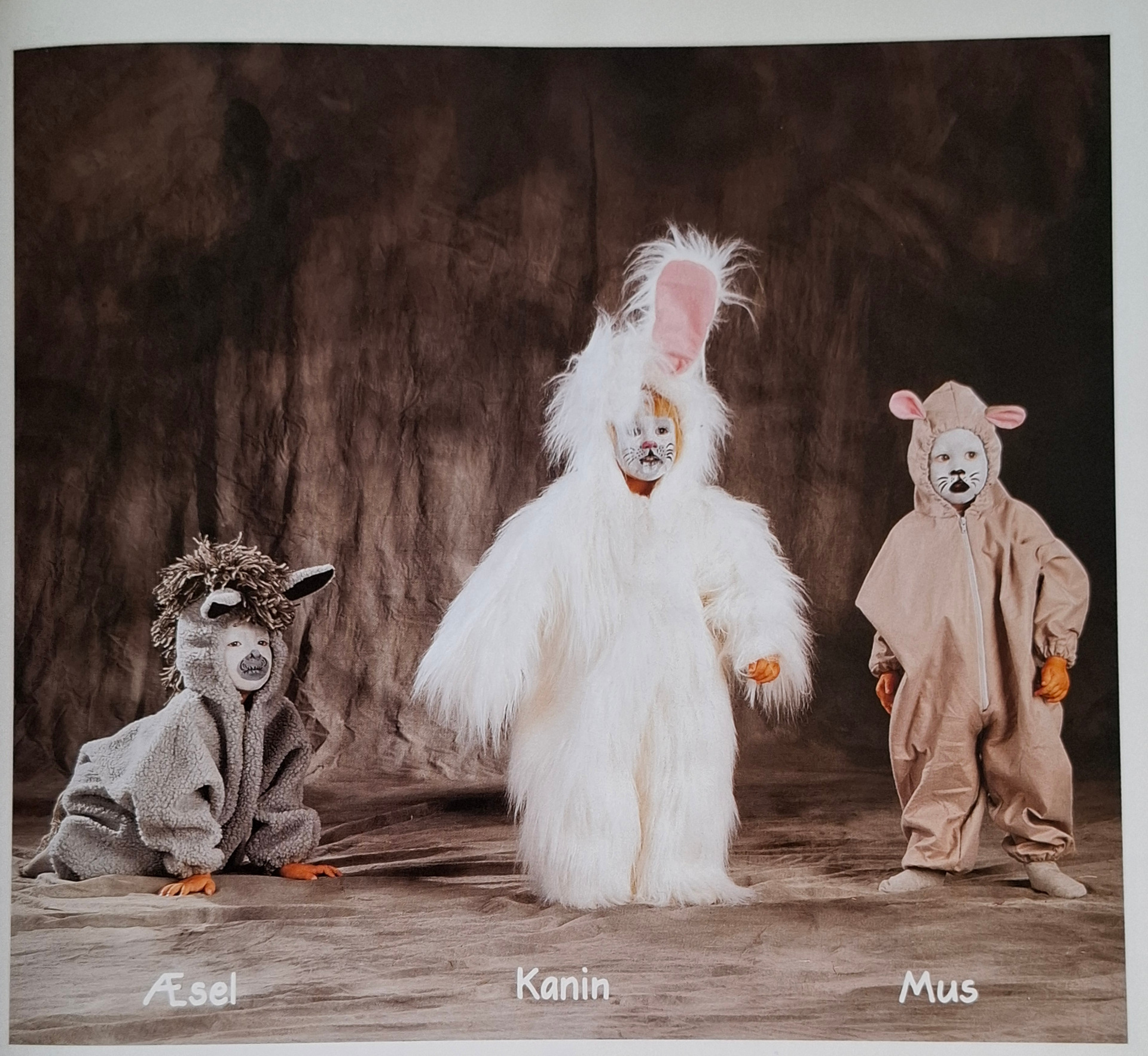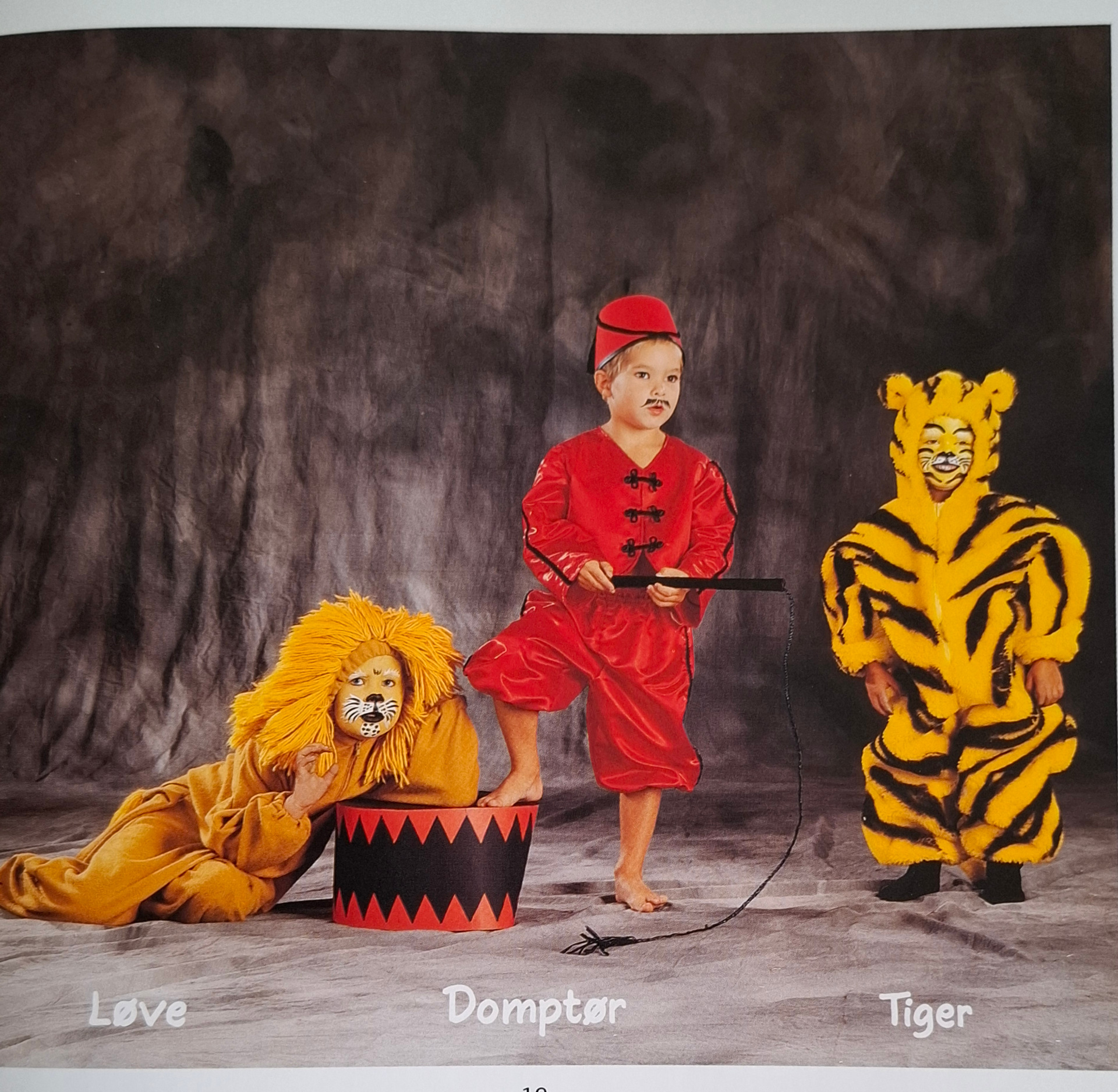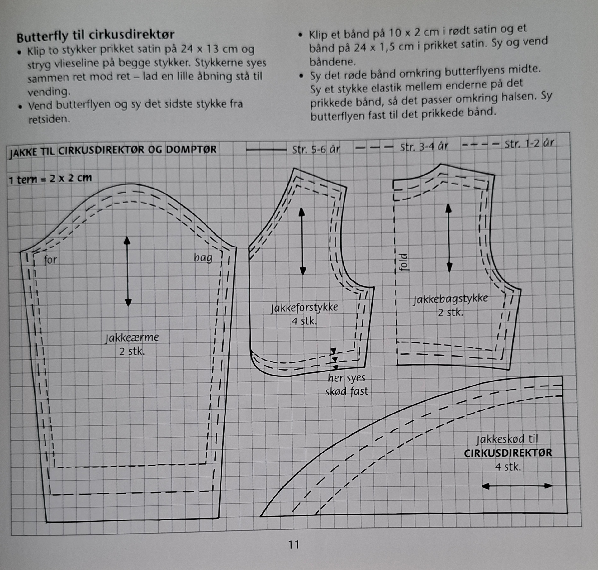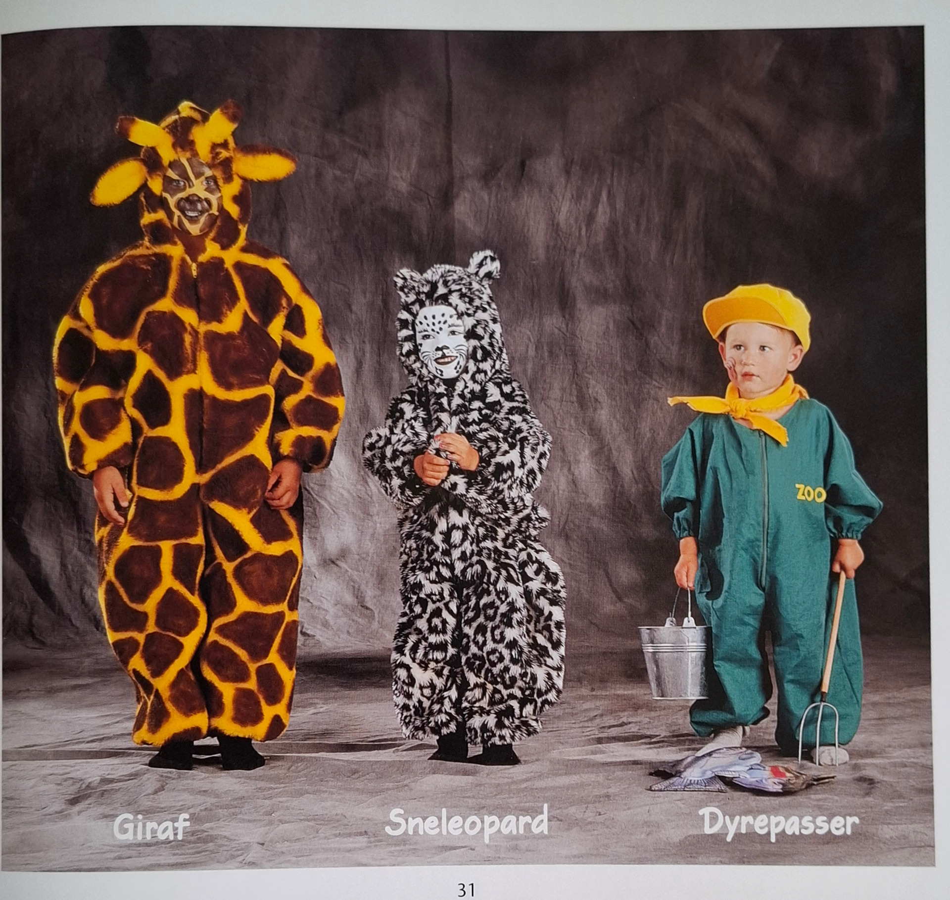 Bok på danska med 60 sidor. Måla ansikten och sy dräkter. Mönster finns i boken att förstora från rutmönster. Dräkterna finns i storlek 1-6 år. Många instruktioner på ansiktsmålning. Material rekommendationer för dräkterna.