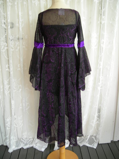 Glittrig överklänning med svart underklänning och vida ärmar. Hatt ingår. Storlek ca 8-10 år. Helt ny.
