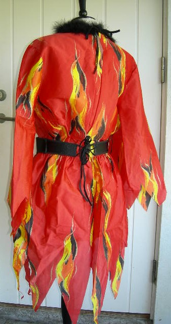 Kort eldklänning med dun i halsen och svart skärp. Storlek 40, övervidd ca 116 cm.