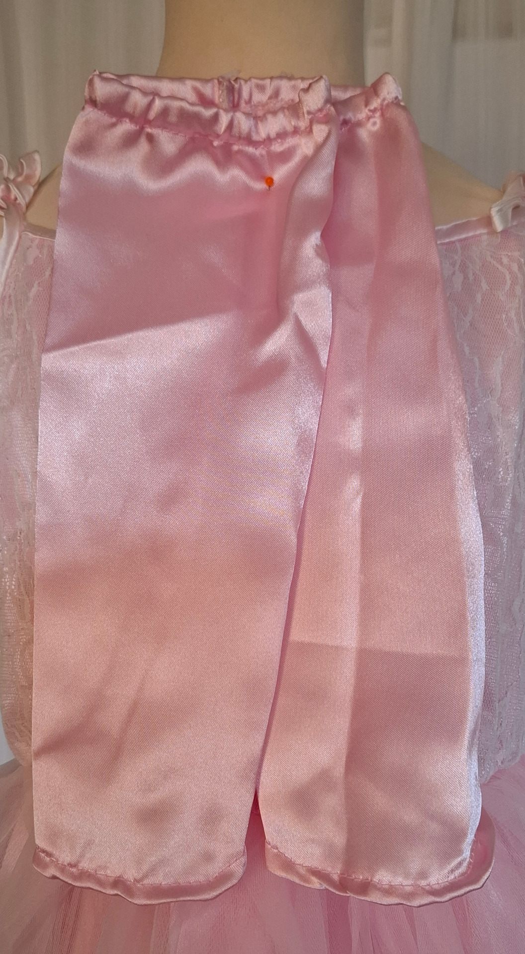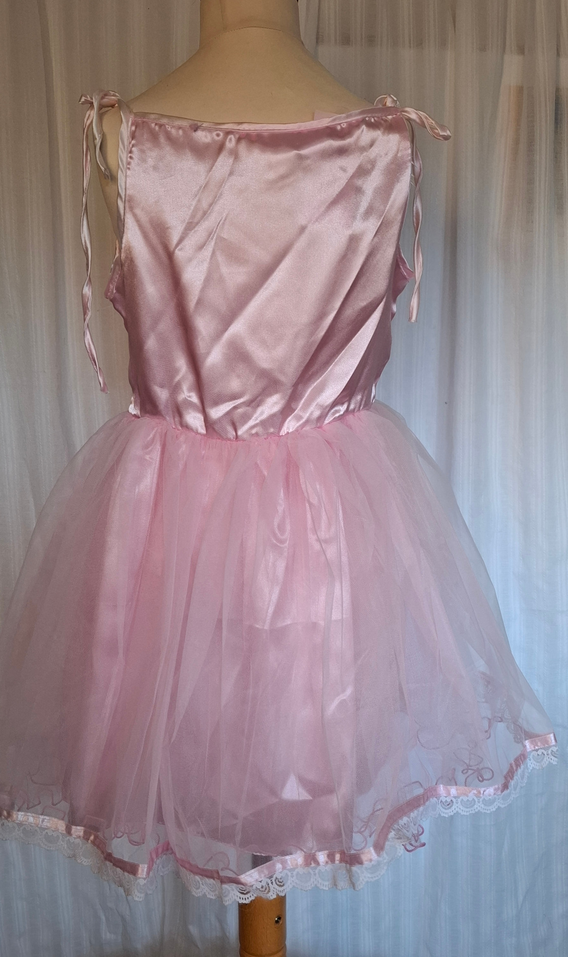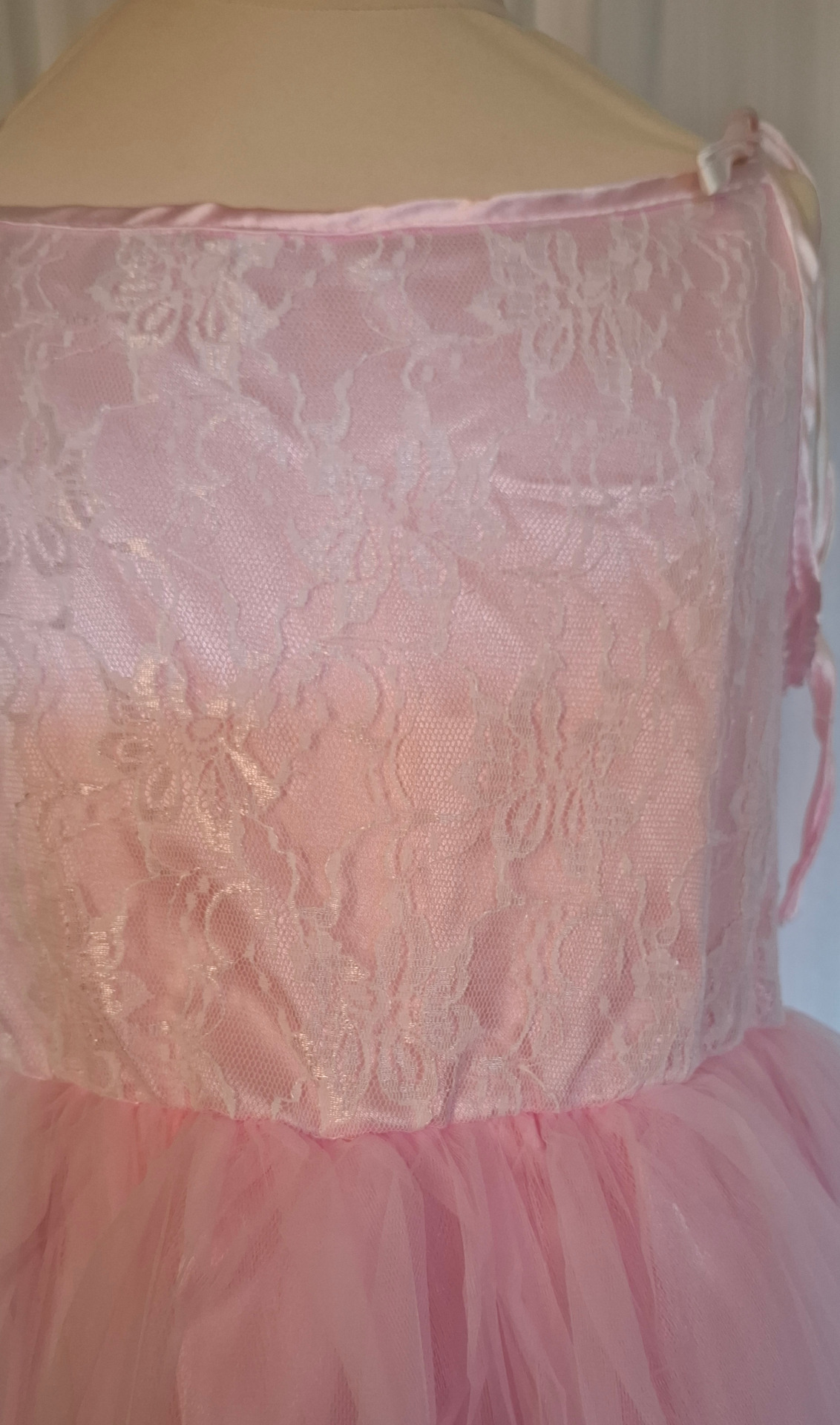 Ballerina klänning med handskar utan fingrar. Kjolen är i tyll och 3 lager. Mått midja ca 61 cm, kjol längd ca 30 cm. Storleks märkt S.