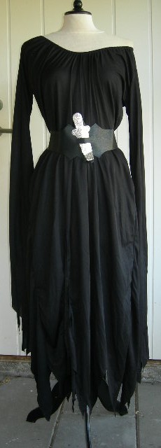 Svart klänning med resår i hals och med väldigt långa ärmar. Övervidd ca 106 cm.