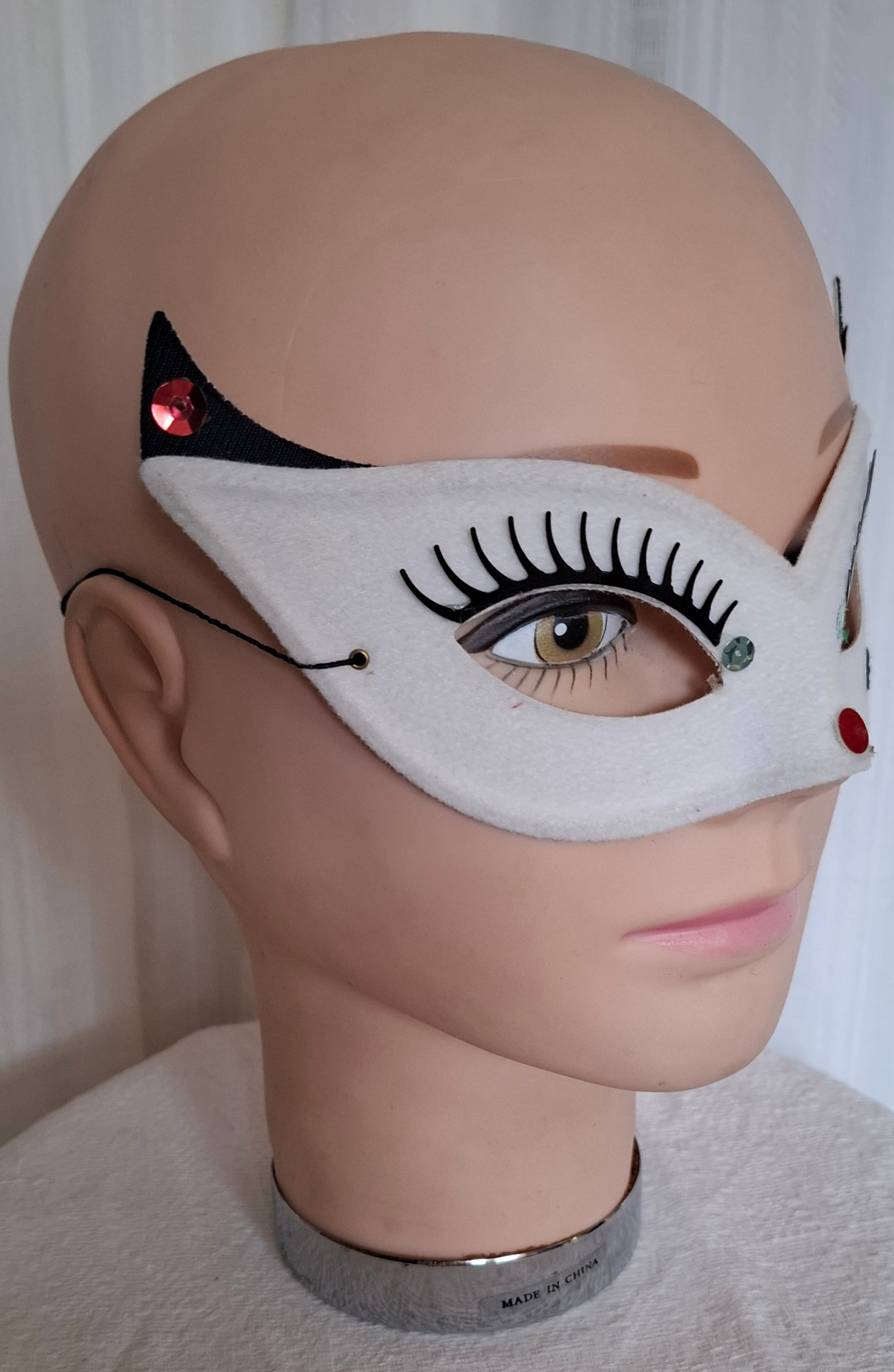 Vit mask med svarta ögonfransar. Passar bäst vuxen.