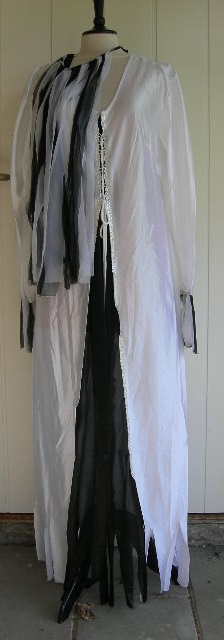 Vit klänning och svart och vit huvudbonad. Storlek 44, övervidd ca 102 cm. Kan regleras lite fram med hjälp av snörningen.